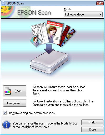 ![]() Program Epson Scan izvede predogled vsake posamezne slike, zazna vrsto originalnega dokumenta in samodejno izbere nastavitve optičnega branja. Čez nekaj trenutkov boste v oknu programa Epson Scan videli pomanjšan prikaz vsake posamezne slike.