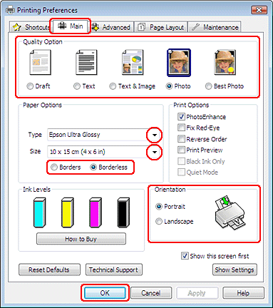 Kliknite jeziček Main, nato pa izberite eno od naslednjih nastavitev Quality Option: