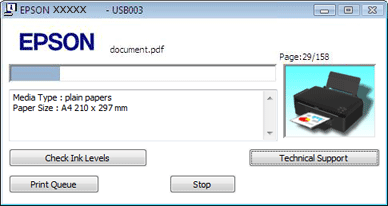 Kad započnete štampanje, na ekranu računara pojavljuje se traka toka.