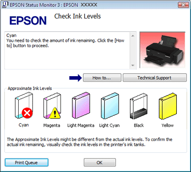 Kada treba da dopunite posudu sa mastilom, kliknite na dugme How To na prozoru i sledite uputstva.