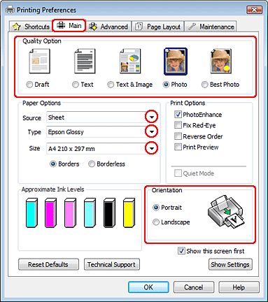 Kliknite na karticu Main, zatim izaberite jednu od sledećih postavki za Quality Option: