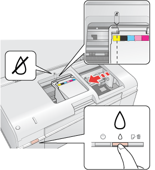 treperi, sijaDa biste zamenili kertridž sa mastilom pomoću dugmeta za mastilo