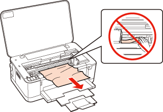 Papperet fastnarTa bort fastnat papper från skrivarens insida — Pappersstopp — Varning: