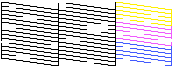 Jämför kvaliteten på den utskrivna testsidan med exemplet här nedan. Om utskriftskvaliteten duger, det vill säga att det inte finns tomma ytor eller delar som saknas i testlinjerna, är det inget fel på skrivarhuvudet.