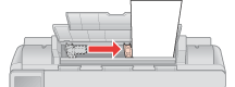 Öppna pappersstödet och fäll matningsskyddet framåt.