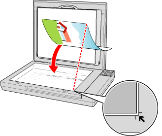 Placering av stora eller tjocka dokumentNär du skannar ett stort eller tjockt dokument kan du öppna skannerns lock helt så att det ligger plant vid sidan av skannern.