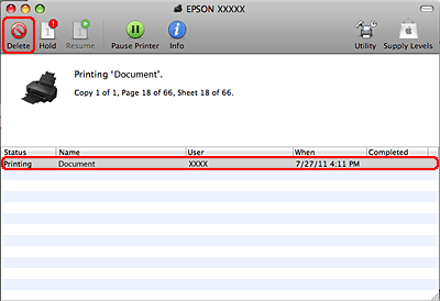 i 3 sekunder för att avbryta ett pågående utskriftsjobb.