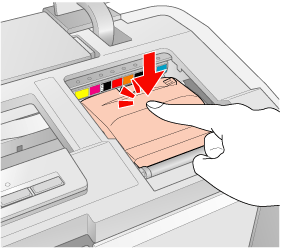 Byta en tom bläckpatronDu kan byta ut en bläckpatron med hjälp av skrivarens knappar eller datorn. Se motsvarande avsnitt nedan för anvisningar.