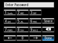 Den här skärmen är ett virtuellt tangentbord. Ange bokstäverna och siffrorna med knapparna och tryck på