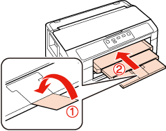 Fyll inte på över pilmarkeringen inuti kantstödet när vanligt papper används. Kontrollera att antalet ark är mindre än det specificerade antalet när Epson specialmedier används.