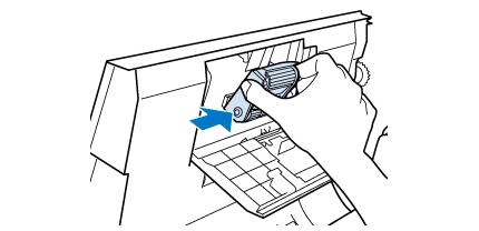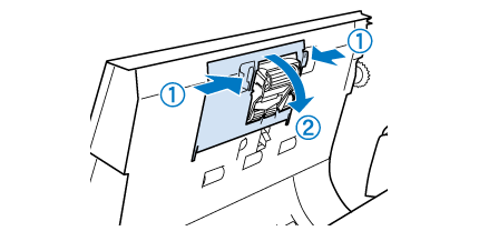 Kağıt alma makarası kapağının her iki tarafındaki kancaya bastırın ve ardından kapağı açın.