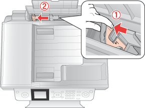 Besleyici koruyucusunu ileri doğru çevirin, ardından da kenar kılavuzunu kıstırıp kaydırın.