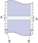Sağ ve sol kenar boşluklarının en az 13'er mm'dir (0,51 inç). Basılabilir alan genişliği en çok 345,4 mm'dir (13,6 inç). Maksimum genişlik 420 mm (16,5 inç) ve maksimum basılabilir alan genişliği 345,4 mm'dir (13,6 inç). 371,4 mm'den (14,6 inç) daha geniş sürekli sayfalarda, kenar boşlukları kağıdın genişliğine uygun olarak artar.