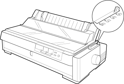 Kağıt Bırakma Kolunu AyarlamaYazıcıya çeşitli kağıt kaynaklarından, sözgelimi ön iten dişli besleyiciden veya kağıt kılavuzundan kağıt yükleyebilirsiniz. Kağıt bırakma kolunu, kullanmak istediğiniz kağıda göre ayarlayın. Aşağıdaki tablo, kağıt bırakma kolunun konumlarından her birinin açıklamasını verir.