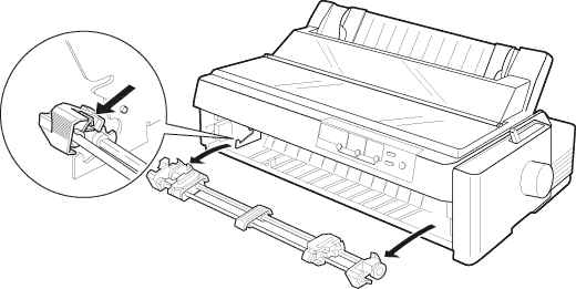Yazıcı teslim edildiğinde, dişli besleyiciler ön itme ve arka itme konumlarına takılıdır. Arka iten dişli besleyici çıkartılamaz.