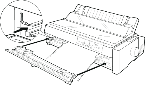 Sürekli kağıt yazdırırken, üst kağıt kılavuzunu daima yatay konuma getirin.