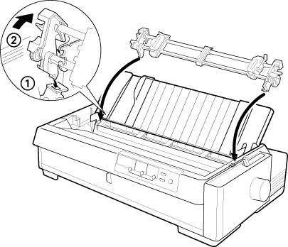 Ön yuvayı kullanırsanız, ön kağıt kılavuzunu, sürekli kağıt aşağıda gösterildiği gibi yerleştirilmiş olarak takın. Sonra kapatın.