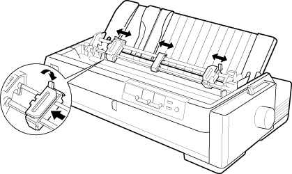 Sağ dişli tekerini kağıdınızın genişliğine uyacak kadar kaydırın, ancak kilitlemeyin. Kağıt desteğini, yukarıda gösterildiği şekilde iki dişli tekerin ortasına getirin. Sonra her iki dişli teker kapağını açın.