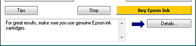 İpuçlarıEpson yazıcı sürücüsünden en iyi sonuçları almanız için çeşitli ipuçları, ilerleme göstergesi penceresindeki metin kutusunda görüntülenir. Pencerede görüntülenen ipucuyla ilgili daha fazla ayrıntı için, Details (Ayrıntılar) düğmesini tıklatın.