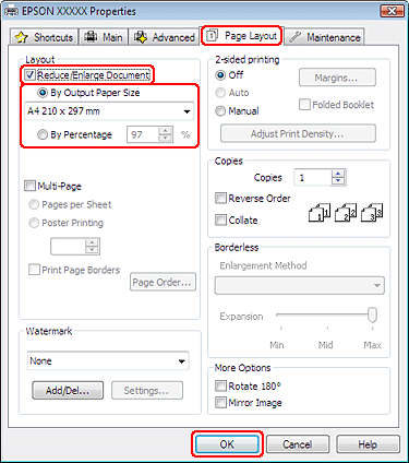 Uygulamanıza bağlı olarak, bu iletişim kutusundaki bazı öğeleri seçemeyebilirsiniz. Bu durumda uygulamanızın File (Dosya) menüsündeki Page Setup öğesini tıklatın ve uygun ayarları yapın.