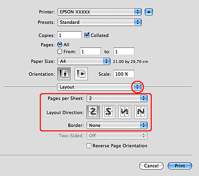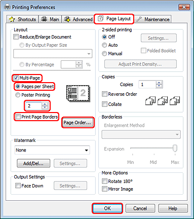 Page Layout (Sayfa Yapısı) sekmesine tıklayın, Pages per Sheet (Yaprak Başına Sayfa Adedi) ve ardından Multi-Page (Çok sayfalı) seçeneğini seçin.