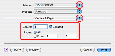 Printer ayarı olarak kullandığınız yazıcıyı seçin ve Copies & Pages ayarlarını yapın.