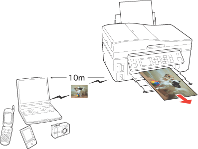 İsteğe bağlı Bluetooth Fotoğraf Yazdırma Adaptörü, cep telefonları, PDA'lar, mobil PC'ler ve dijital fotoğraf makineleri gibi Bluetooth uyumlu cihazlardan kablosuz bir şekilde yazdırma olanağı sağlar.