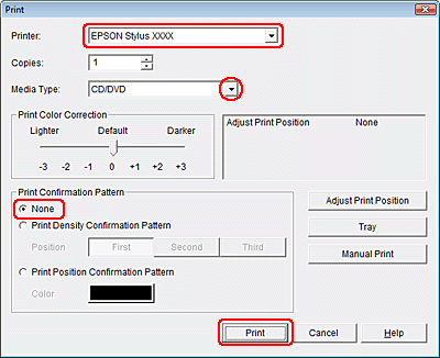 Оберіть CD/DVD чи CD/DVD Premium Surface у якості значення параметра Media Type (Тип носія).