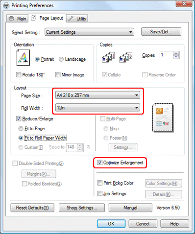 Якщо у якості значення параметра Source (Джерело) обрано Roll Paper (Рулонний папір), зображення буде автоматично збільшене для того, щоб уникнути друку білих полів.