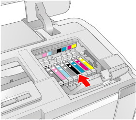 Якщо після повернення друкувальної голівки у вихідне положення індикатори чорнила і помилки блимають, можливо, картридж може бути неправильно встановлено. Ще раз натисніть кнопку  і повторно встановіть картридж, поки він не зафіксується на своєму місці.