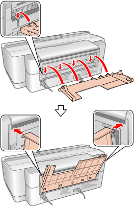 . Подача відбувається у зворотному напрямку і папір вивантажується до заднього лотка. Натисніть кнопку паперу